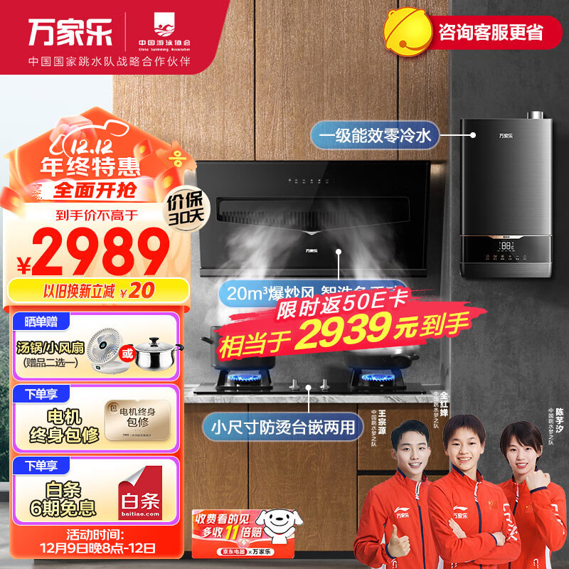 万家乐 抽油烟机 厨卫烟灶热套装 20m3/min油烟机燃气灶防冻增压13L零冷水热水器DAJ3+AY4+13DLU3天然气价格:3089.00元!