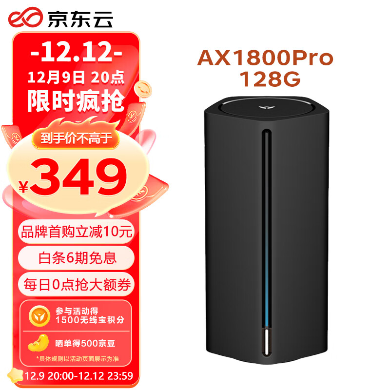 京东云无线宝 能赚京豆的云路由器 AX1800 Pro 128G高通5核处理器 WIFI6 5G双频高速 游戏路由 无线穿墙路由价格:499.00元!