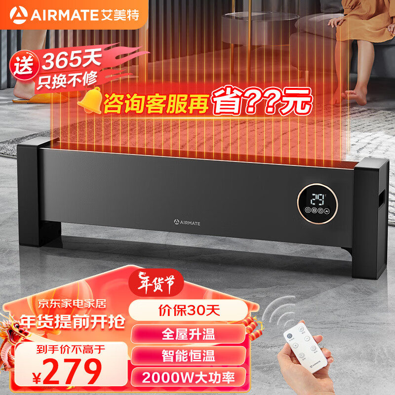 艾美特(AIRMATE)取暖器/电暖气/暖风机/电暖气片家用/移动地暖 客厅浴室防水智能温控遥控定时速热踢脚线价格:309.00元!