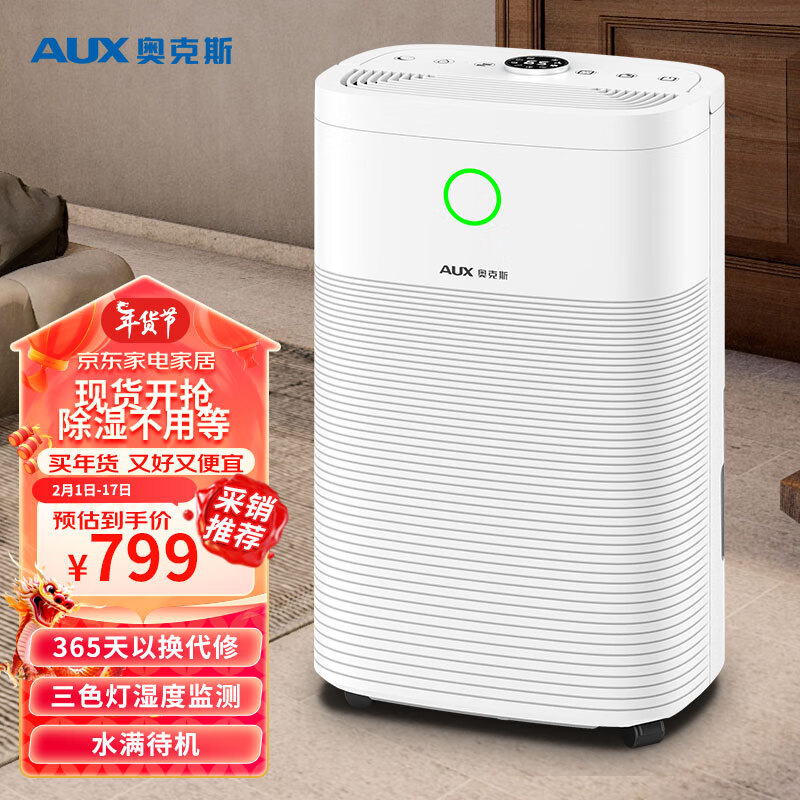 奥克斯(AUX)除湿机/抽湿机/适用0-120㎡除湿器 家用地下室吸湿器22升/天 干燥机干衣机净化一体KDY-DP22A价格:879.00元!