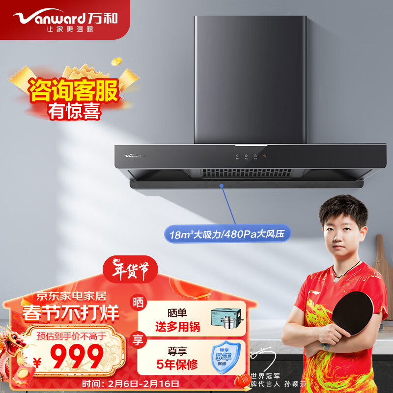 万和(Vanward)欧式油烟机顶吸式 家用抽油烟机 18m3/min大吸力 触控吸油烟机 单烟机 X518A价格:999.00元!
