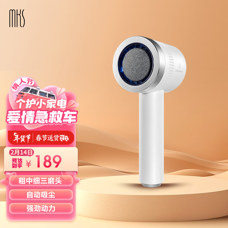 mks美克斯修脚器电动磨脚器充电式去脚皮死皮老茧搓脚磨脚石美足仪自动吸尘 NV8615D价格:189.00元!