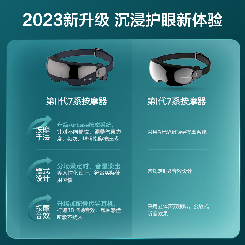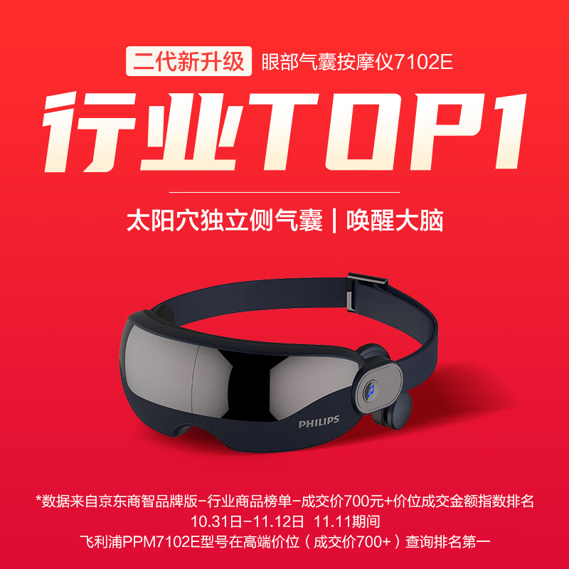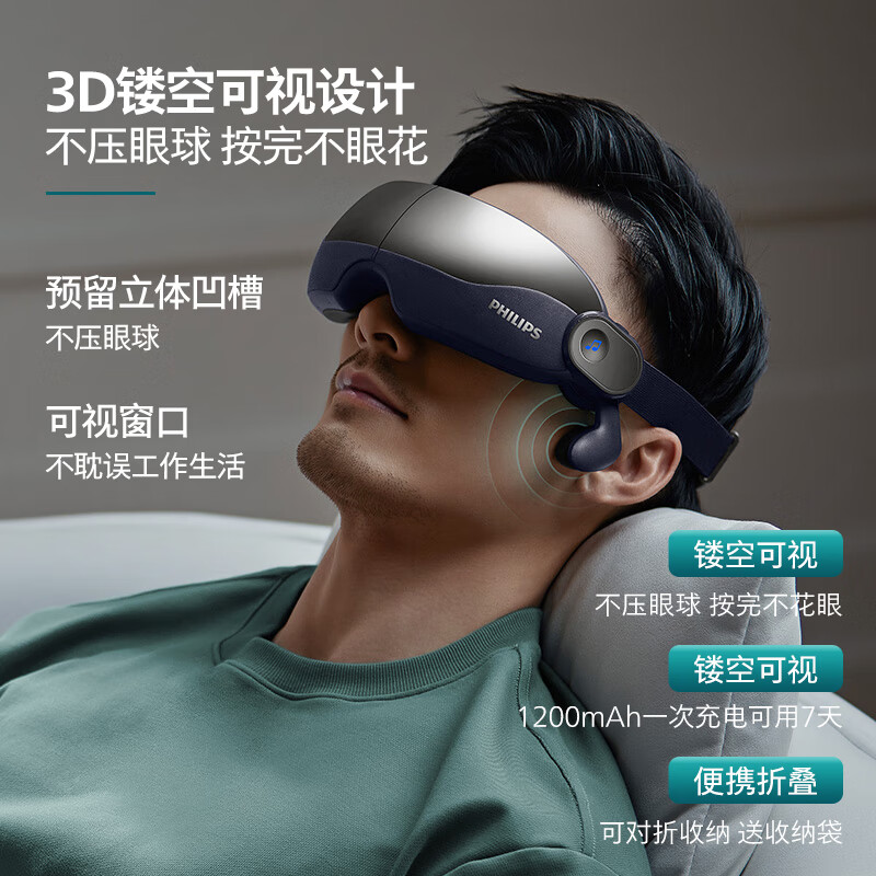 飞利浦(PHILIPS)眼部按摩仪睡眠眼罩按摩器热敷护眼仪气囊按摩蓝牙骨传导音乐 圣诞礼物生日礼物 7102E价格:789.00元!