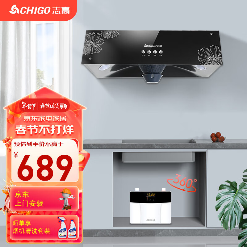 志高(CHIGO)油烟机家用抽油烟机出租房小尺寸顶吸脱排烟机中式厨房大吸力油烟机CXW-200-AX06价格:689.00元!