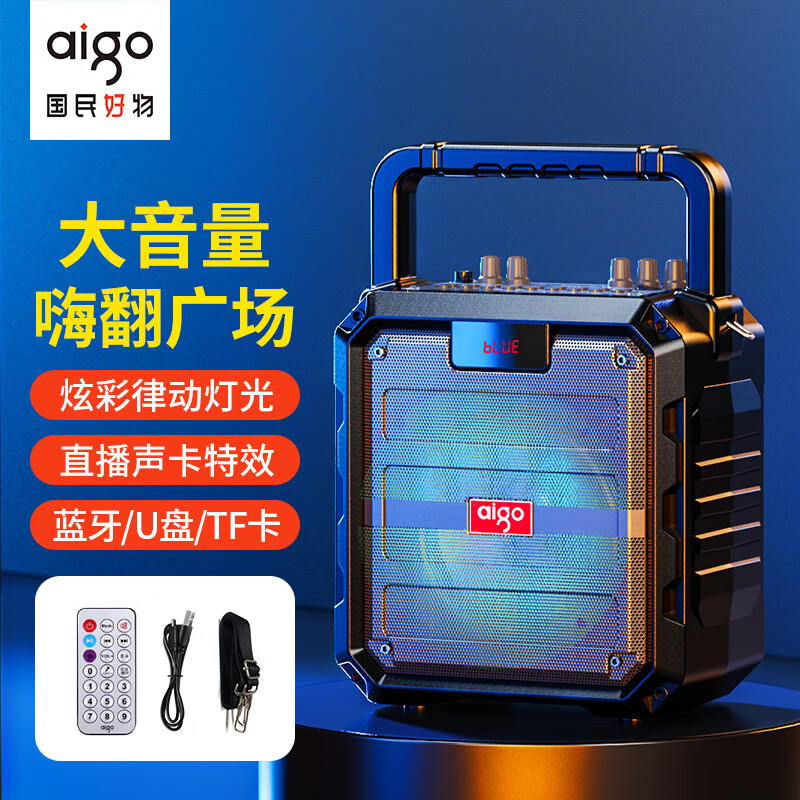 爱国者T53蓝牙音响 大音量便携户外K歌广场舞音箱家用声卡特效低音炮无线摆摊收款喇叭 标准版价格:188.00元!