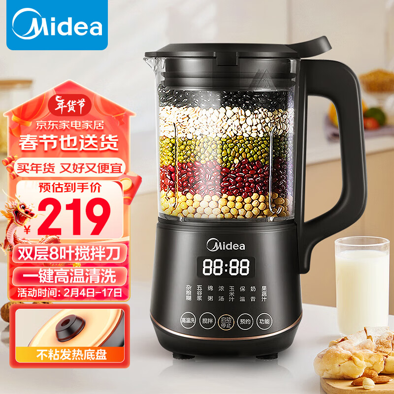 美的(Midea)破壁机家用免过滤豆浆料理机可预约加热保温早餐辅食机双层防烫PB40X2-701A价格:359.00元!