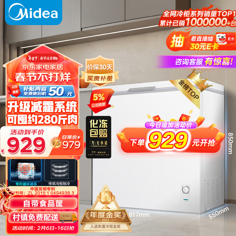 美的(Midea)203升 低霜家商两用囤货大冷柜 冷藏冷冻转换冰柜 一级能效卧式冰箱 BD/BC-203KMD(E) 以旧换新价格:979.00元!