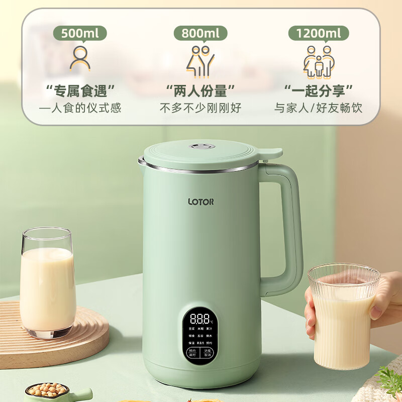 小浣熊破壁机家用豆浆机降噪长时预约加热保温迷你小型果汁榨汁高速搅拌料理机免洗免滤免泡辅食机早餐机 1-1.2L绿色大屏款价格:258.00元!