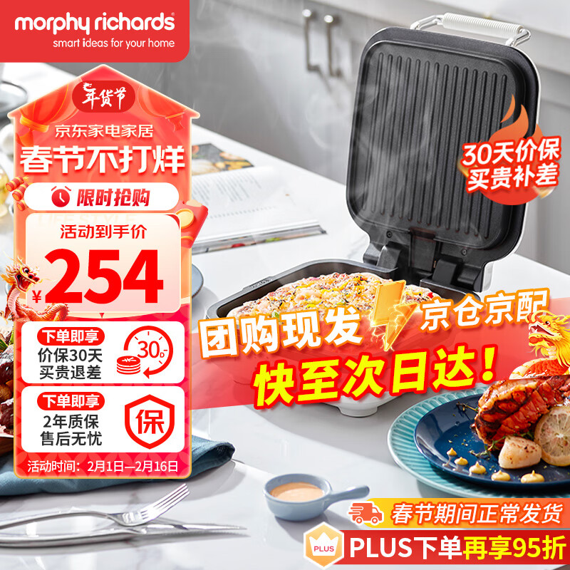 摩飞电器(Morphyrichards)电饼铛 家用双面加热大火力三明治早餐机 下盘可拆卸面包吐司煎烤机烙饼锅 MR8600椰奶白价格:254.00元!