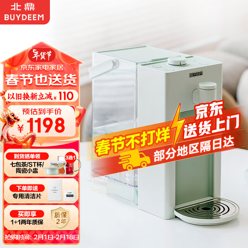 北鼎(Buydeem)台式饮水机办公室桌面即热式饮水机速热饮水机泡茶机智能饮水机一体机3L S901浅衫绿 价格:1331.00元!