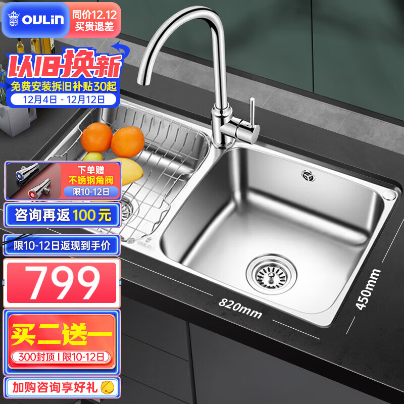 欧琳厨房水槽水盆不锈钢洗菜盆洗碗池大双槽洗菜池OLH9813b价格:899.00元!