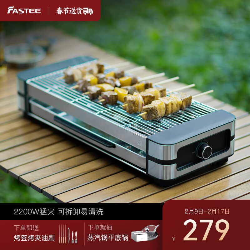 法诗缇(Fastee) 烤串机自动旋转烧烤炉电烤炉烧烤架电烧烤炉家用无烟烤串炉烤肉机烤羊肉串机 手动烤串炉 1层价格:309.00元!