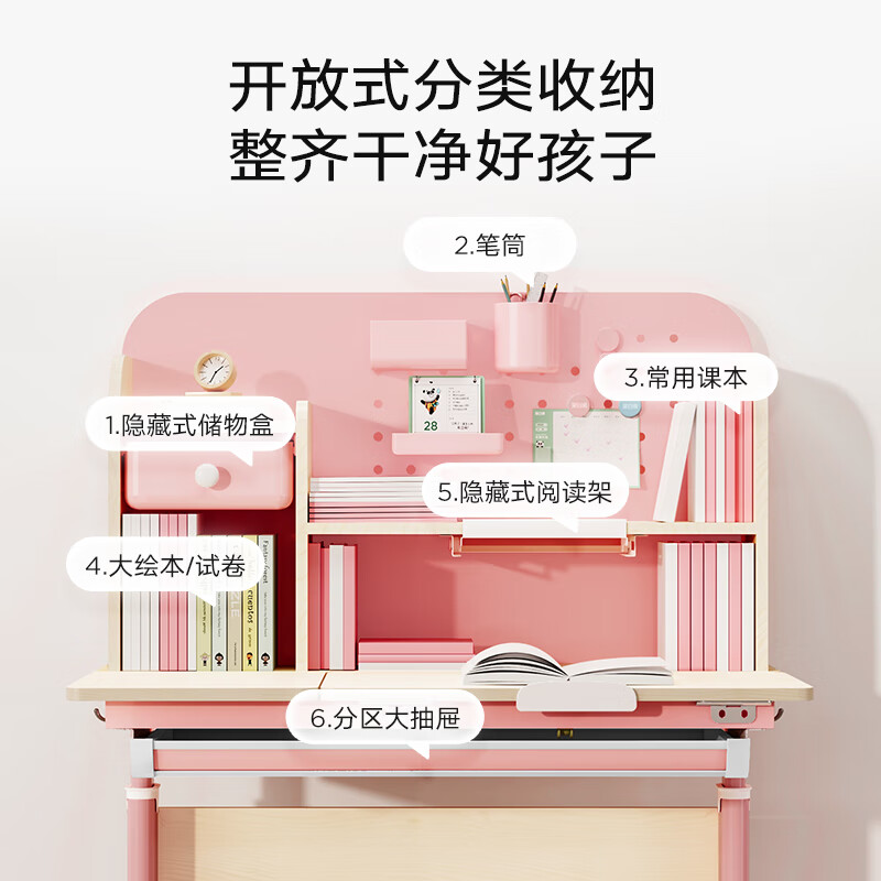 2、为了给孩子养成好习惯,购买了这款口碑产品。到货安装完成后,实测非常完美桌面有学习区和收纳区,大大拓展了学习空间,学习椅舒适好用,孩子非常喜欢。