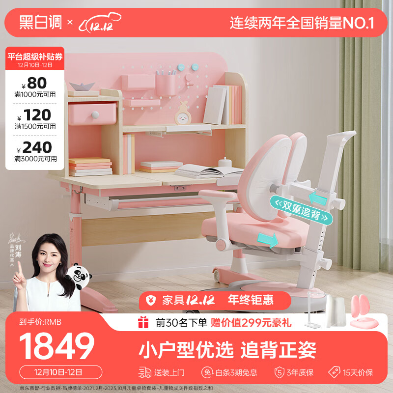 黑白调学习时光C3学习桌【小户型优选】实木儿童书桌儿童学习桌椅套装 1米 粉价格:2199.00元!