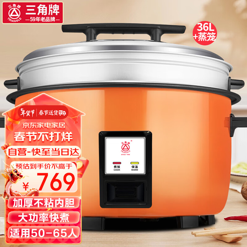 三角牌(Triangle)商用电饭煲 大容量电饭锅食堂酒店饭店工厂超大老式蒸饭大型蒸饭锅36L+蒸笼价格:769.00元!