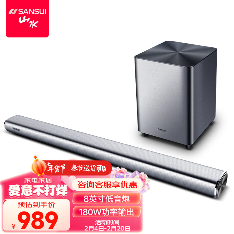 山水(SANSUI)DV-92A 回音壁音响 音箱 家庭影院 Soundbar电视音响 蓝牙音响 条形音响 壁挂音响 独立低音炮价格:989.00元!