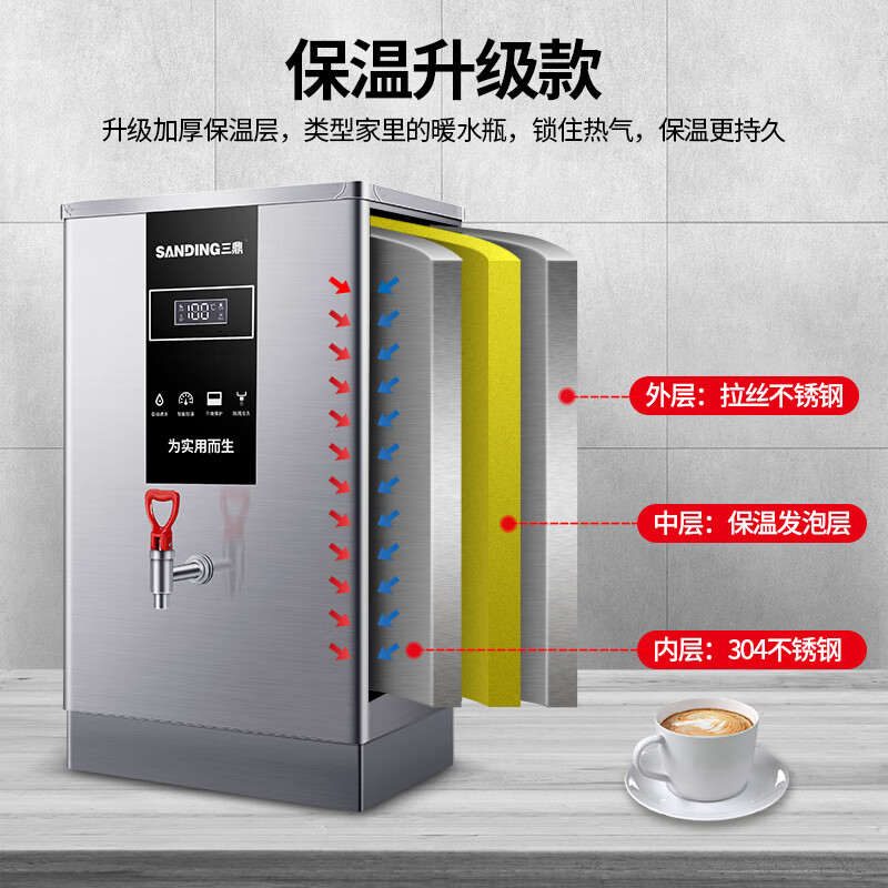 三鼎 开水器开水机商用数显数控烧水器开水桶全自动电热饮水机直饮机 150L/h 15kw380v发泡保温款价格:1599.00元!