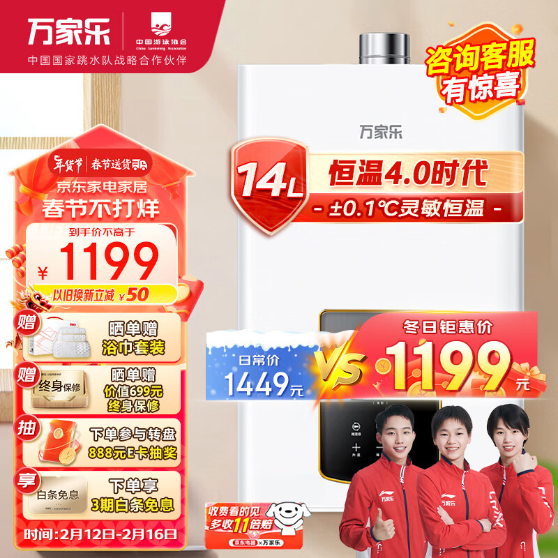万家乐 13升燃气热水器电家用恒温即热式天然气 水量伺服器智能变升节能随温感JSQ26-13D6S(F)价格:1199.00元!