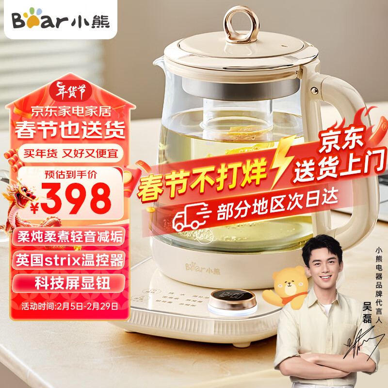 小熊(Bear)小气泡养生壶 烧水壶 1.5升家用恒温水壶煮茶器煮茶壶 降噪轻音 带玻璃炖盅 YSH-F15E1 玻璃花茶壶价格:448.00元!