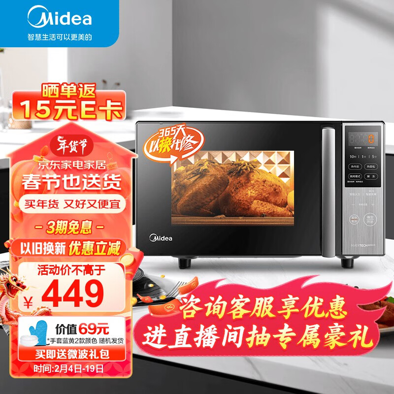美的(Midea)微碳系列 家用微波炉烤箱一体机 杀菌智能家用 800W速热20L大容量 6代变频 (PC20M5W)价格:509.00元!