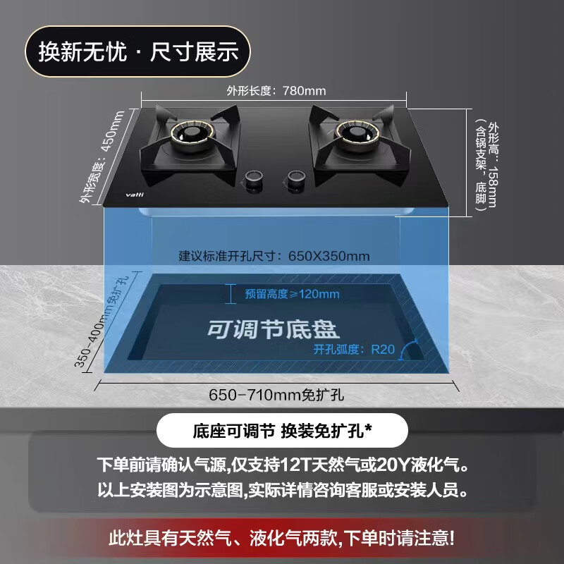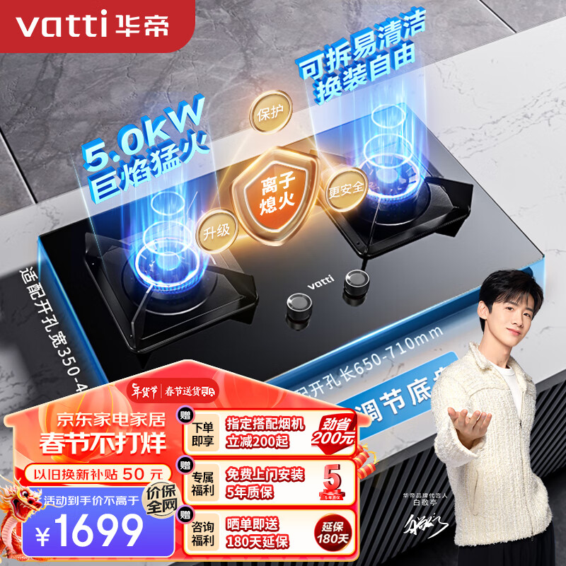 华帝(VATTI)燃气灶液化气家用台式嵌入式两用煤气灶双灶台打火灶具 5.0kW底座可调换灶不改孔灶具 JZY-i10076B价格:1799.00元!