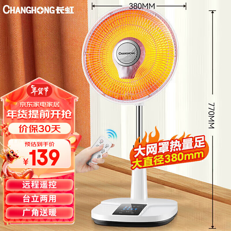 长虹(CHANGHONG)取暖器/小太阳/电暖器/电暖气/取暖电器/电热扇/电暖炉小型/烤火炉/快热炉 速热可摇头CDN-RT211PY价格:139.00元!