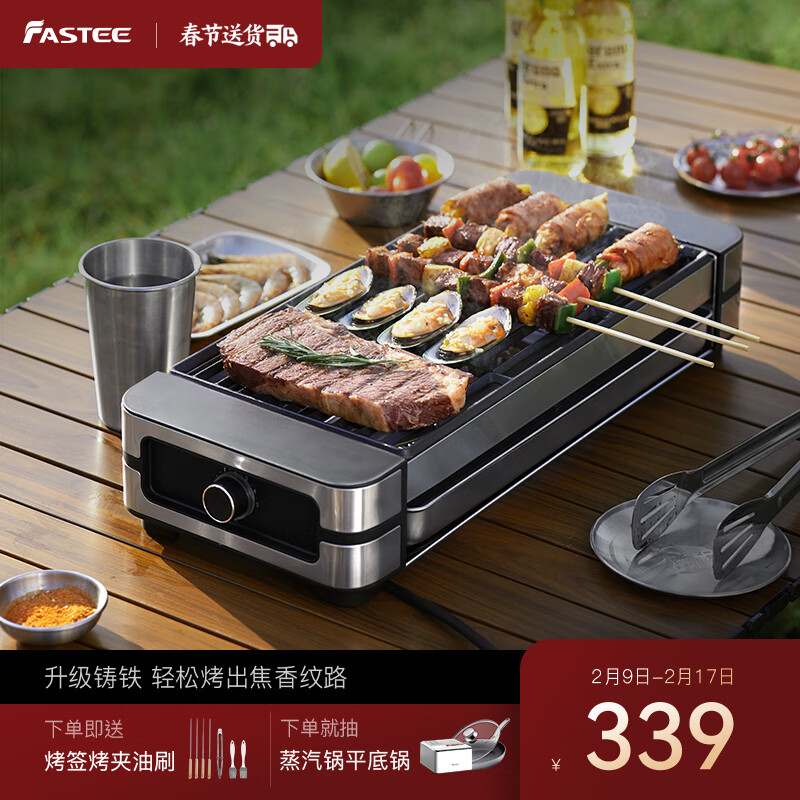 法诗缇(Fastee)电烤炉烤串炉家用电烧烤炉韩式无烟不粘牛扒烤肉生蚝 2200W功率 升级铸铁网 双烤网(铸铁烤网+烤网)价格:369.00元!