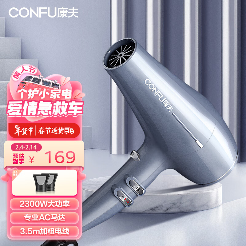 康夫(CONFU)家用电吹风机2300W大功率强劲大风力速干 恒温护发过热保护 发廊理发店吹风筒 KF-8949价格:169.00元!