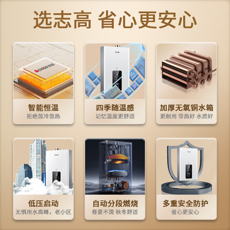志高(CHIGO)12升燃气热水器家用天然气强排式水气双调恒温低压启动多点供水健康洗故障自检上门安装JSQ23-H价格:648.00元!