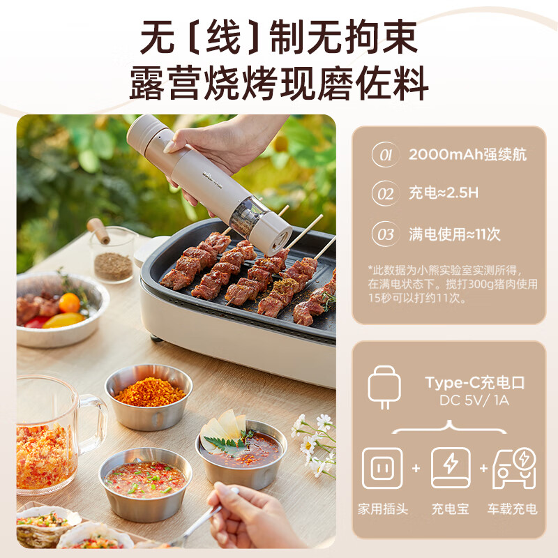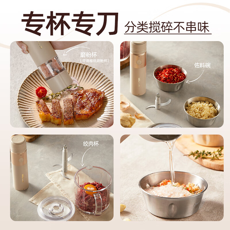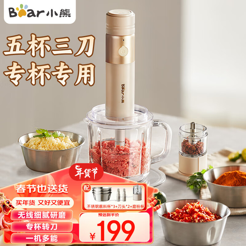 小熊(Bear)绞肉机家用备餐佐料机电动料理棒 套娃辅食机多功能搅拌机碎肉磨粉机 捣蒜器 QSJ-E70C1价格:199.00元!