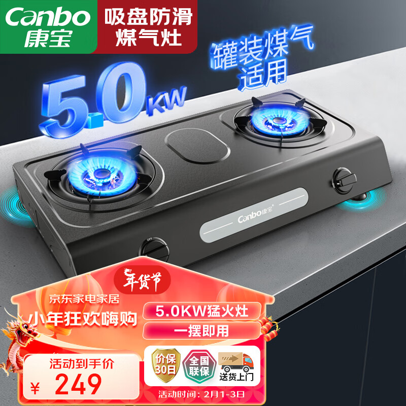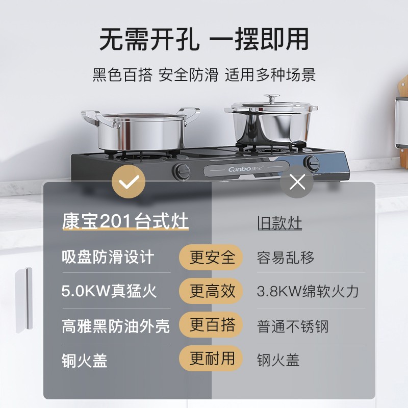 康宝(Canbo)吸盘防滑 燃气灶 台式灶液化气双灶具 家用5.0KW猛火大火力灶台 JZY-2ES201(2) 煤气(液化气)价格:509.00元!