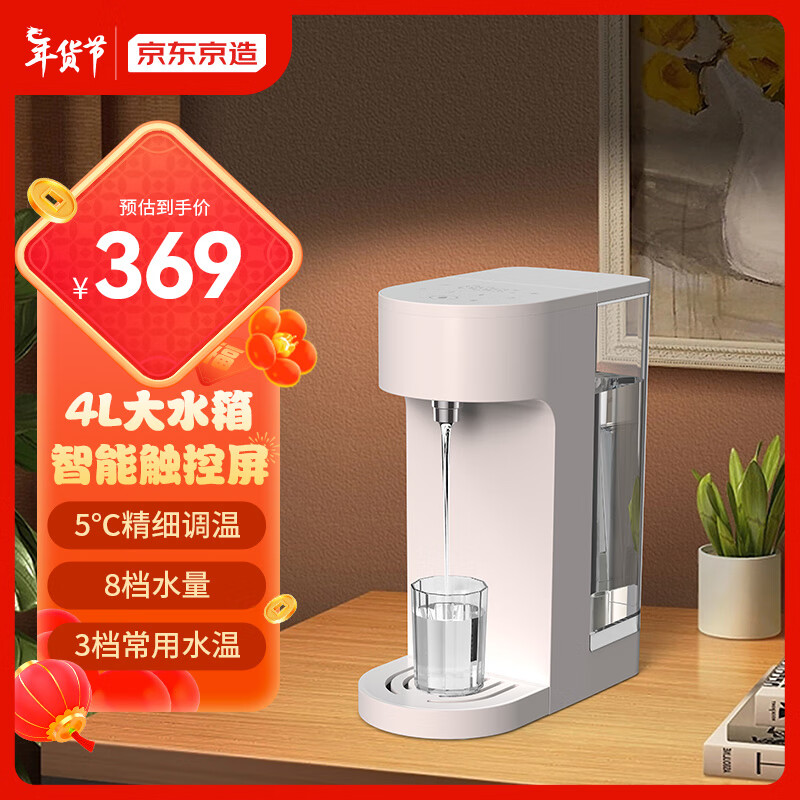 京东京造 即热式饮水机 4L大容量 家用台式小型免安装 3秒速热 智能触控屏 5℃调温 独立纯水箱直饮机价格:369.00元!
