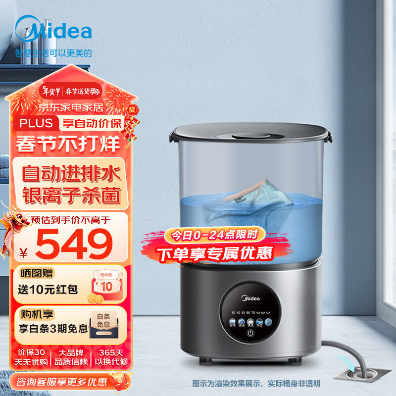 美的(Midea)内衣内裤分桶洗衣机便携式婴儿童衣服清洗机1.5KG触控迷你洗袜子神器 (一机一桶)MFB15-I31S价格:549.00元!