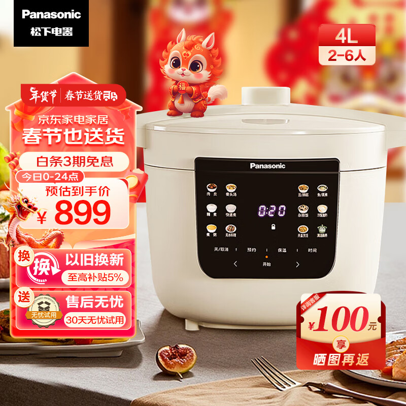 松下(Panasonic)4L电锅 焗鲜锅 开盖火锅料理 智能高压锅电饭锅 24h人性化预约 NF-PC401-L价格:759.00元!