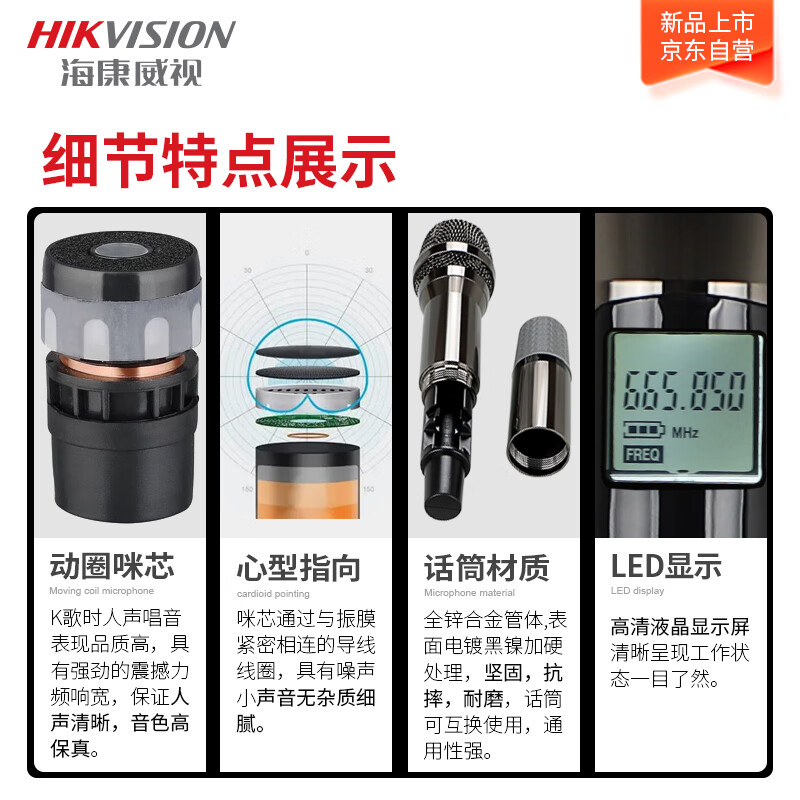 海康威视手持一拖二无线麦克风专业会议演讲UHF直播话筒百米传输防啸叫舞台唱歌家用主持培训广播婚庆晚会KTV价格:800.00元!