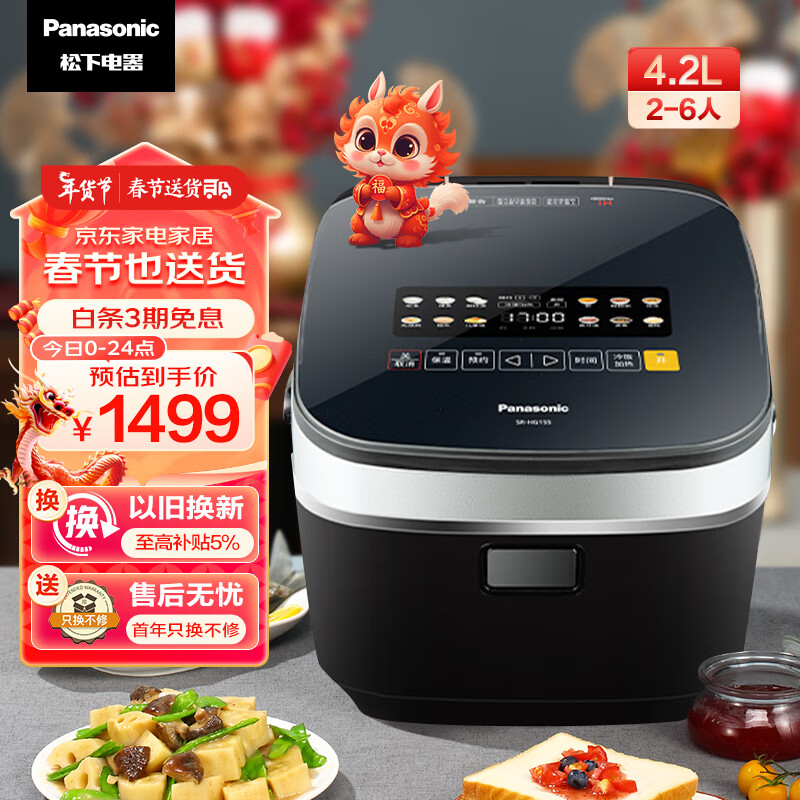 松下(Panasonic)4.2L电饭煲 IH电磁加热电饭煲 玻屏触控面板 一键式可拆洗 不锈钢内盖 SR-HG155价格:1499.00元!