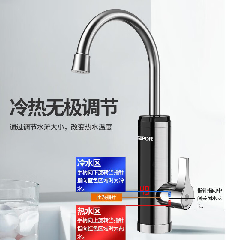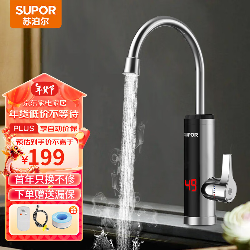 苏泊尔(SUPOR)电热水龙头速热即热式加热快速热过水热电热水器家用272947-04-CP银色漏保款价格:199.00元!