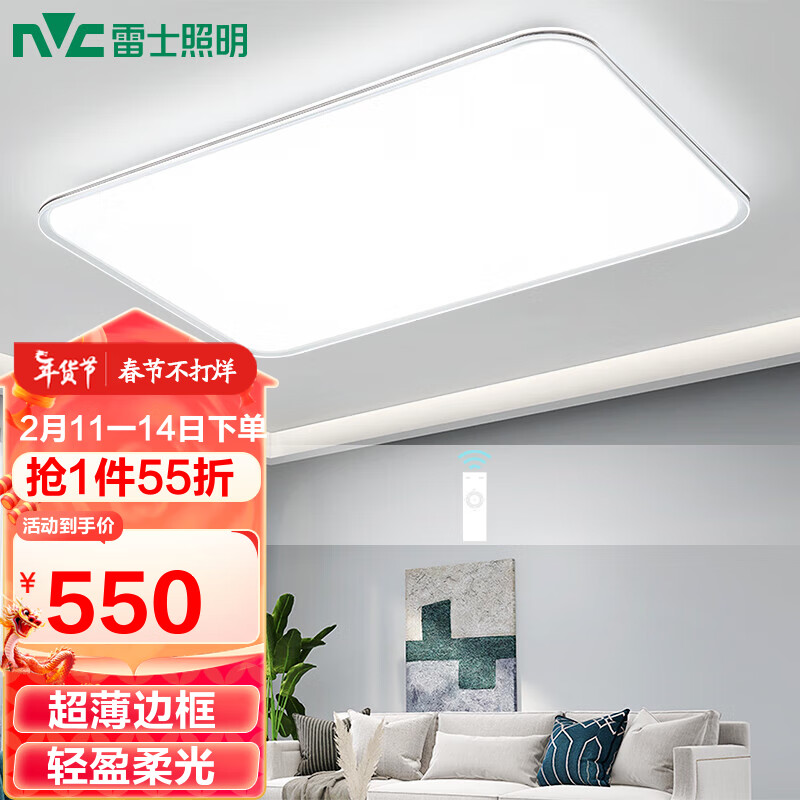 雷士(NVC)LED吸顶灯现代简约风格客厅书房卧室灯具大屏遥控调光灯饰新月A价格:999.00元!