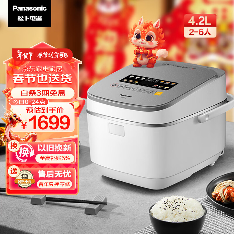 松下(Panasonic)电饭煲电饭锅4.2L IH电磁加热 备长炭铜釜 一键式可拆洗 不锈钢内盖 SR-HTL155价格:1699.00元!