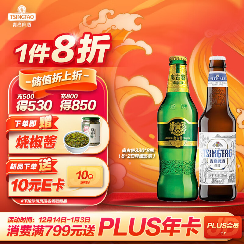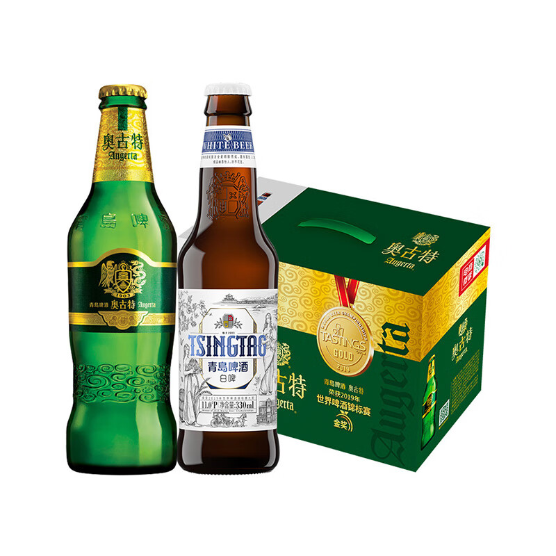 青岛啤酒(TsingTao)奥古特330ml*8瓶+精酿白啤330ml*2瓶 整箱装价格:98.00元!