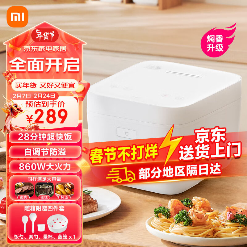 米家小米电饭煲电饭锅5L高颜值聚能烈焰灶釜快速煮3-10人多功能家用智能电饭煲价格:269.00元!
