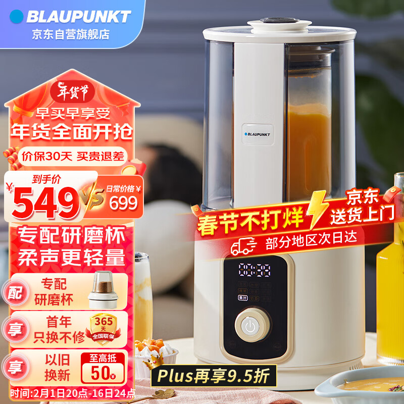 蓝宝(BLAUPUNKT)柔音破壁机家用豆浆机全自动榨汁机搅拌机辅食机研磨杯多功能料理机PB03白色年货送长辈价格:549.00元!