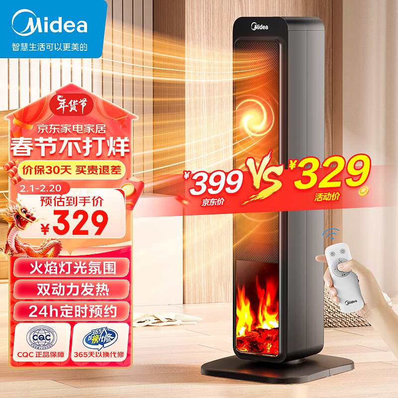 美的(Midea)【超级单品】暖风机家用/电热取暖器/加热风机/电暖器/电暖气/电热风扇大面积摇头3D火焰 HFU20FRS价格:421.00元!