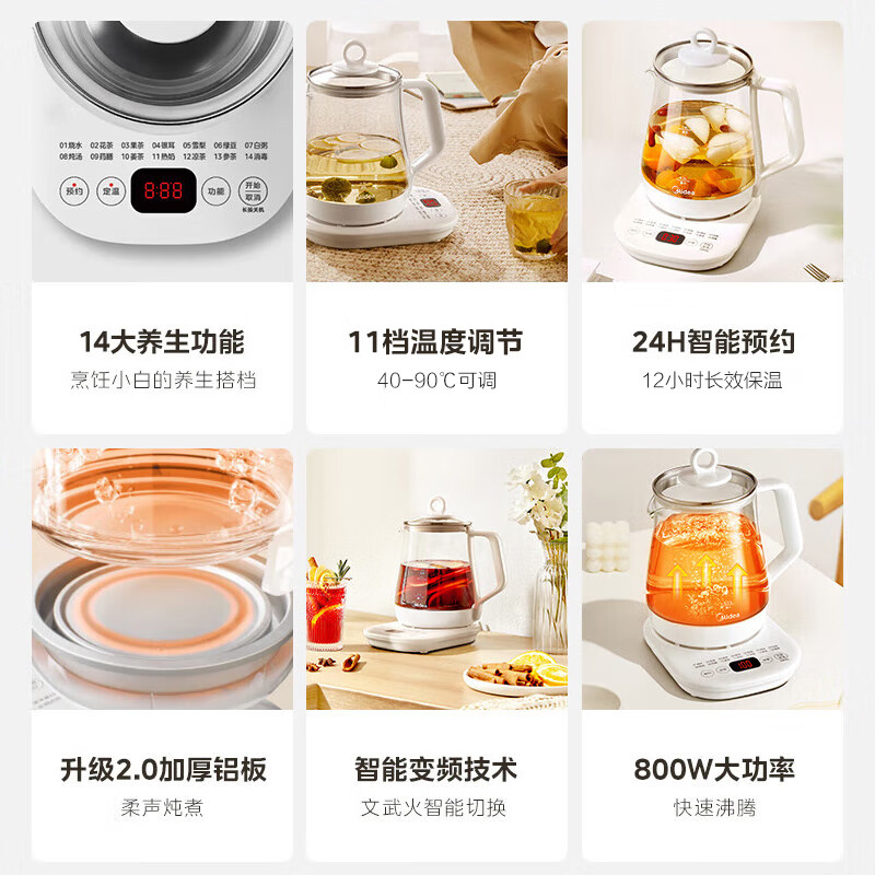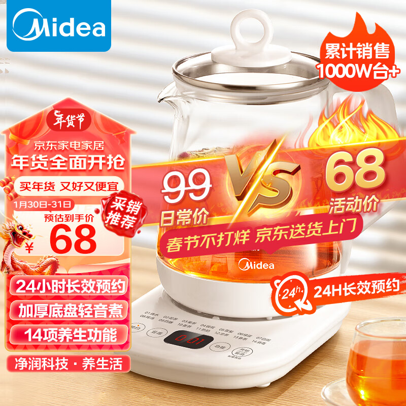 美的(Midea)养生壶净润1.5L大容量烧水壶 煮茶器智能预约煮茶壶 办公室电水壶 花茶壶 MK-Y12Q价格:68.00元!