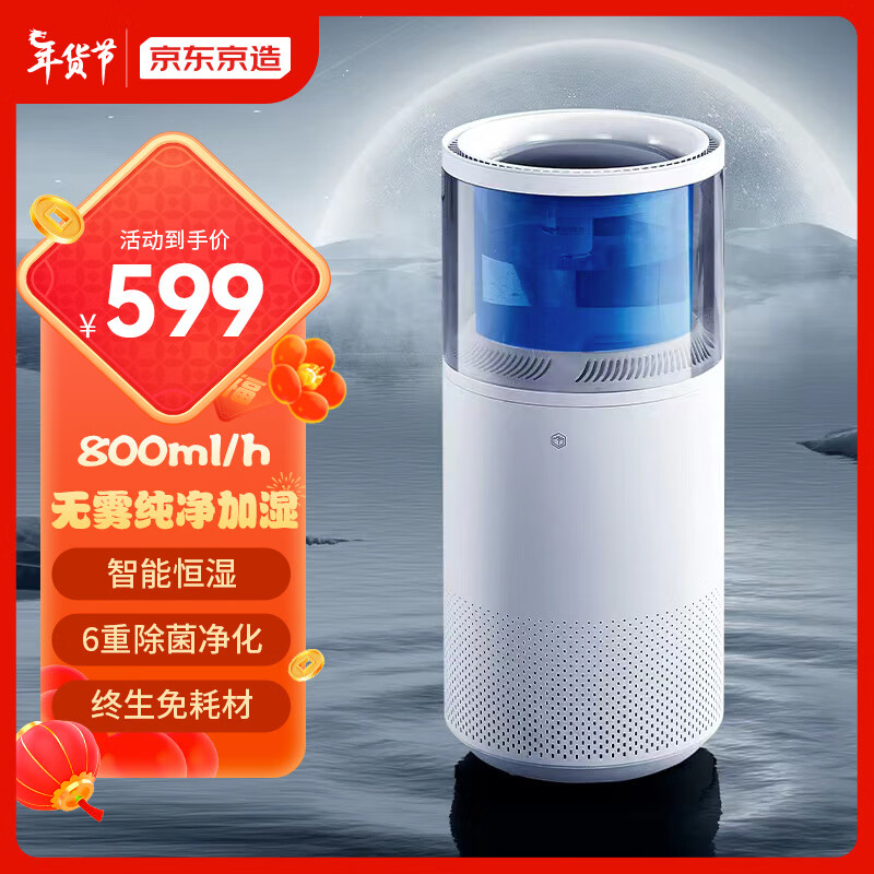 京东京造 无雾加湿器 卧室婴儿空气加湿器 全链路除菌 负离子净化 大容量轻音智能恒湿 家用办公室立式价格:599.00元!