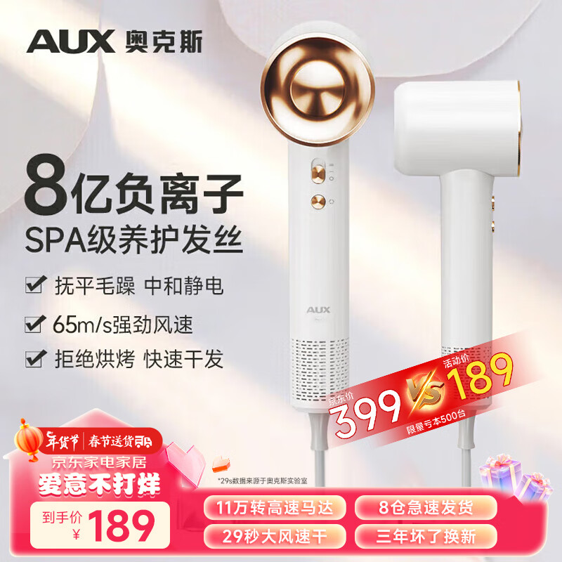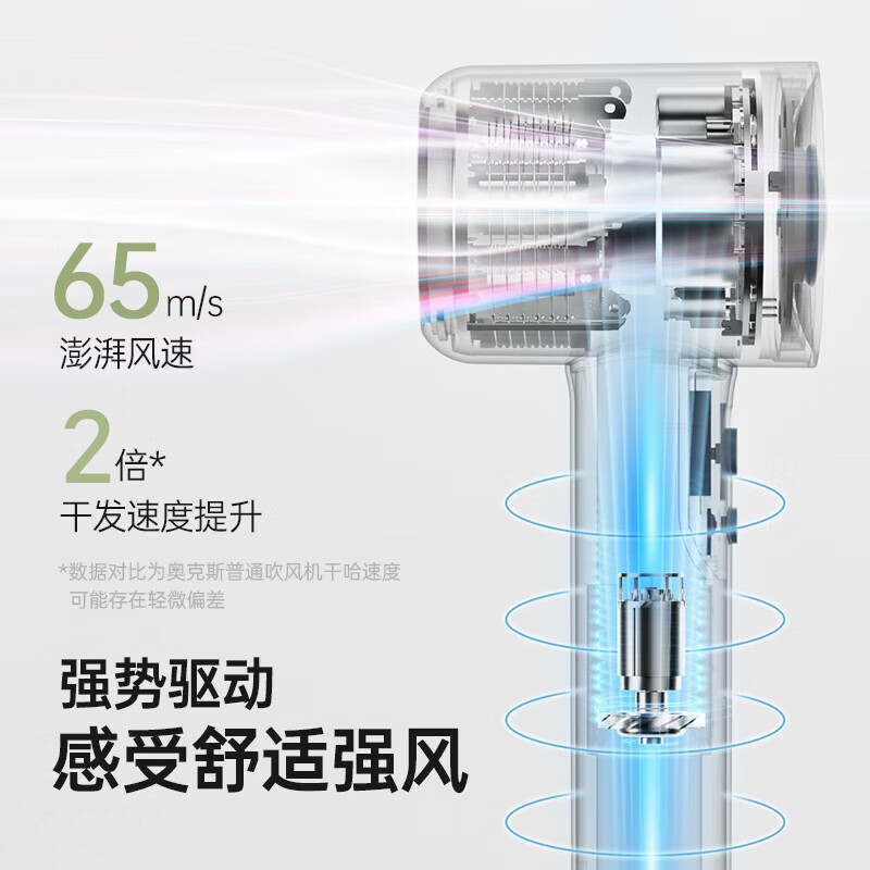 奥克斯高速吹风机家用电吹风负离子护发大功率理发店专用大风力速干无叶不伤发低音发廊款吹风筒生日送礼价格:189.00元!