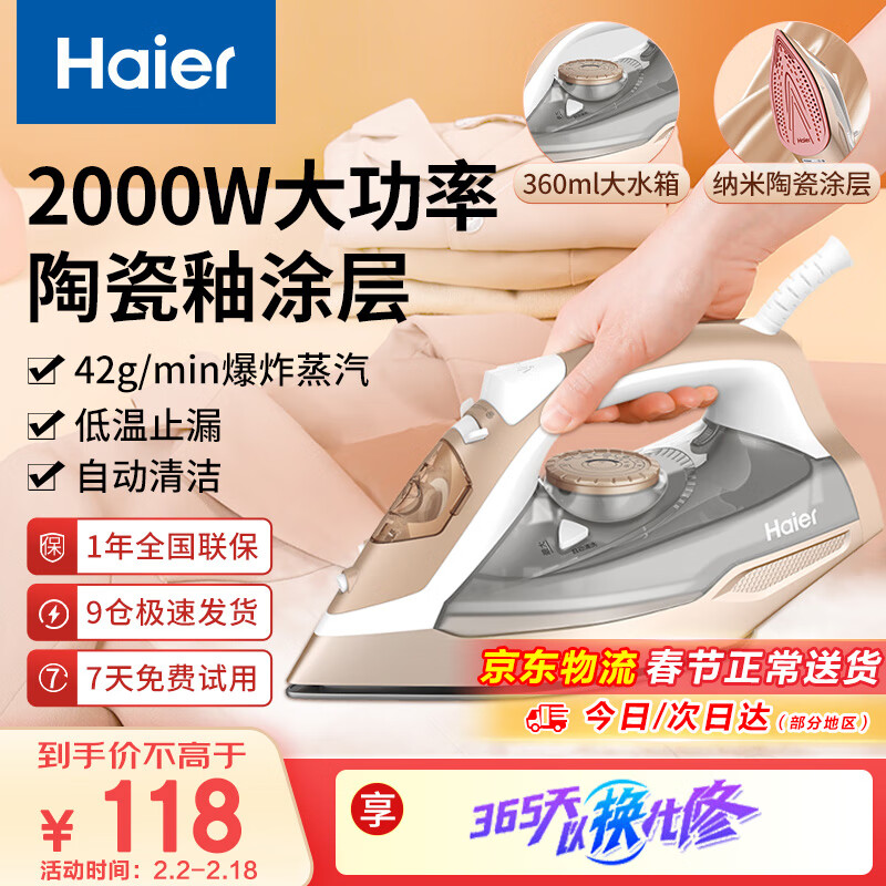 海尔(Haier)电熨斗蒸汽挂烫机2000W陶瓷涂层垂直熨烫机电烫斗家用衣物护理烫衣服手持迷你便捷烫熨机HY-Y2028G价格:129.00元!
