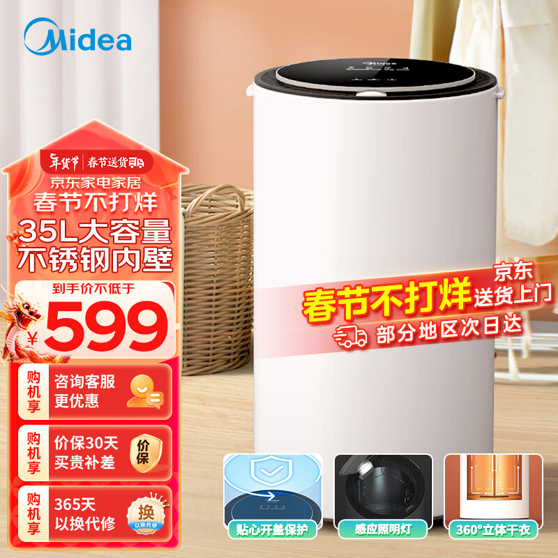 美的(Midea)干衣机家用35L大容量 智能触屏衣物烘干机 多重除菌烘衣机烘鞋机紫外线内衣内裤除菌机MH-DXW35价格:665.00元!