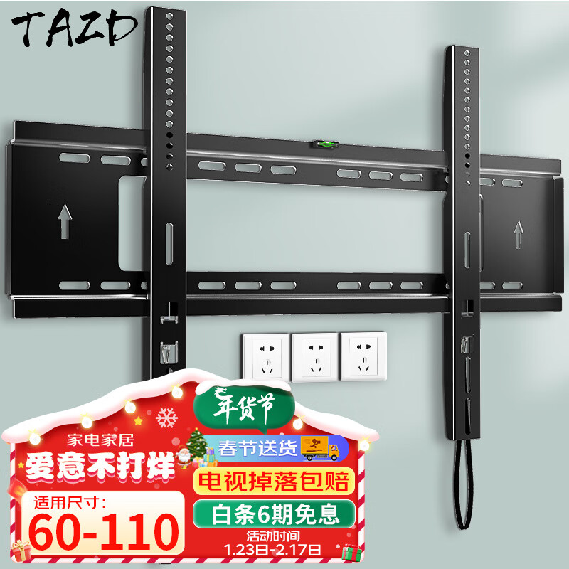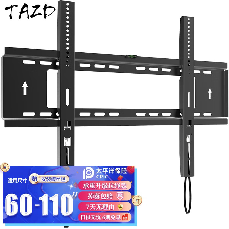 TAZD电视挂架(26-110英寸)通用电视支架海信创维索尼华为长虹TCL海尔小米智慧屏液晶壁挂架 【60-110英寸】承重升级 拉绳安装价格:129.00元!
