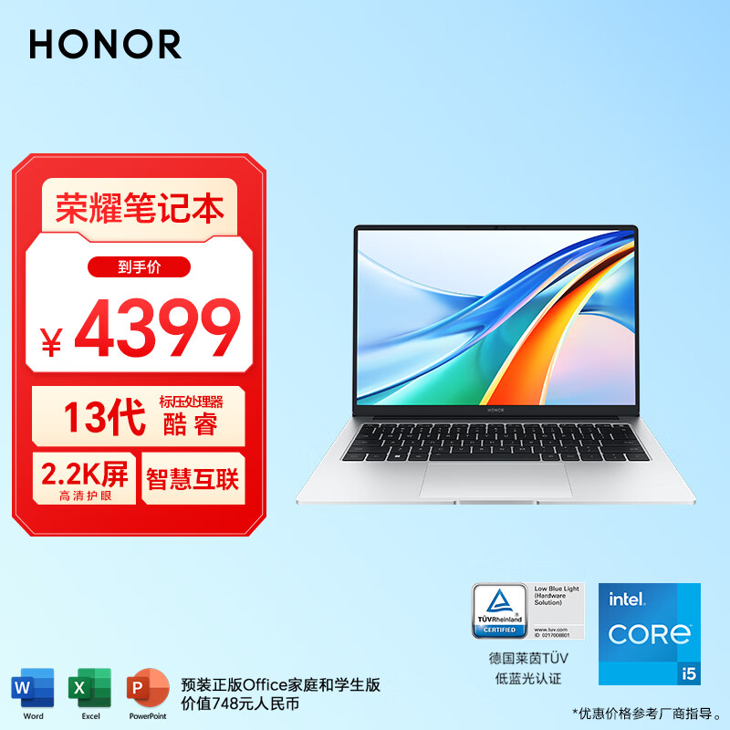荣耀MagicBook X14Pro2023 13代酷睿标压i5-13500H 16G 512G 2.2K护眼屏 14吋高性能轻薄笔记本价格:4399.00元!